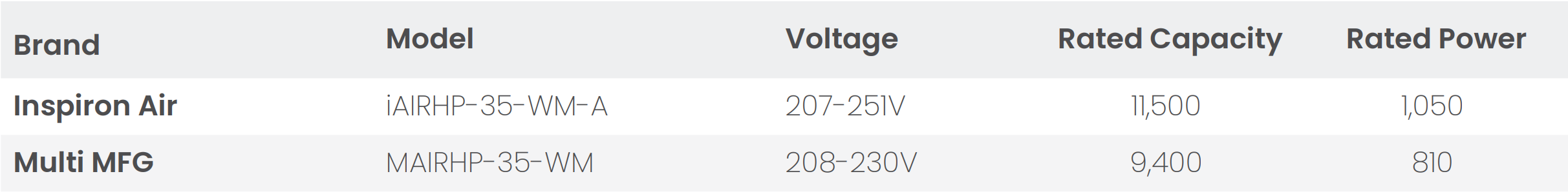 Ice Air lists 8,000 BTU at 3.5 COP. DesignLine lists 11,200 BTU at the same 3.5 COP. That is more than a 40% increase in heating output with no efficiency loss and no increase in wattage.
